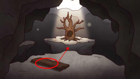 2、点击木板,放置在空隙位置,进入树洞