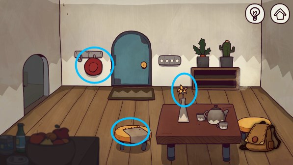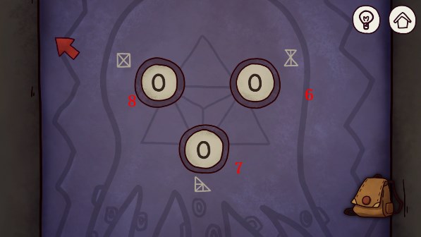 23、使用火柴点击蜡烛,照亮周围。点击大门,输入密码。密码:876,墙壁上的数字对应的是图案一共有几个三角形