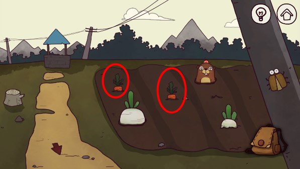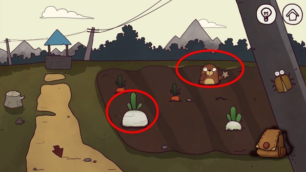 8、来到农田,观察鼹鼠手中是否有星星,没有星星点一下,出现星星后,将萝卜放在空的洞里。揍鼹鼠,拿星星