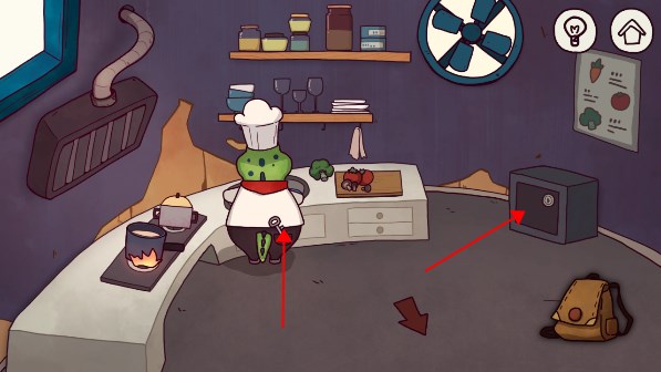 12、回到鳄鱼家,先给鳄鱼3个萝卜,做饭转身后,点击背后的钥匙,打开保险箱,拿门禁卡