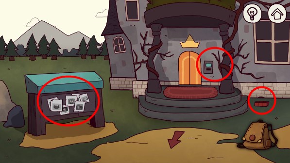 13、来到城堡门口,点击地上的红色方块,获得红色方块点击门锁,使用门禁卡,进去
