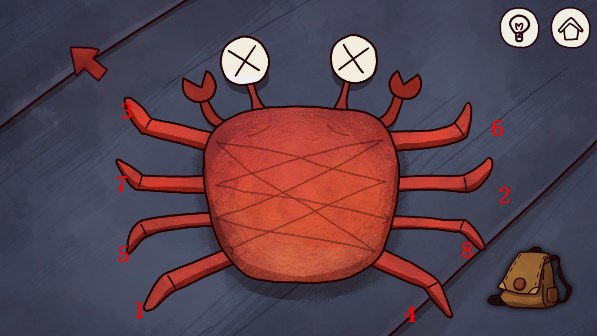 18、点击书本,一直点到最后一页获得纸张,点击螃蟹,通过面上剪头的方向按顺序点击螃蟹腿,即可打开。密码(从上往下): 左4,右2,左1,右4,左3,右1,左2,右3,获得蓝水晶,点击狮子雕像,获得者狮子雕像
