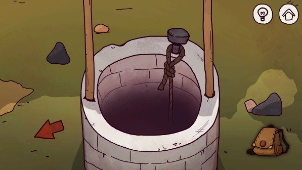 22、到农田位置,点击井,将绳子绑到钉子上,点击绳子下去。