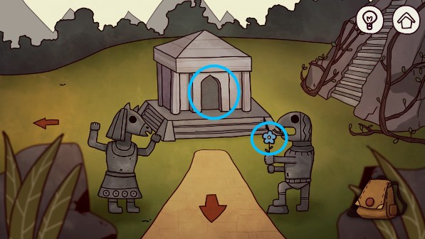 26、点击雕像手中的蓝花,获得蓝花输入密码打开大门。密码:2153,大门上的图案和左边场景底座上的图案有关联,底座上的雕像便是解密的关键,观察雕像的空白区域查漏补缺,可以看出去2153这个密码。