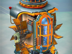 10、将轨道轮放入到士兵之间的凹槽里,然后转动轨道轮,使其与两侧的轨道连接,然后点击两个士兵,他们就会撞在一起破损掉拉手放到正大门的孔里,转动打开里的机关,滑动机关里的滑块,大门打开就通关了