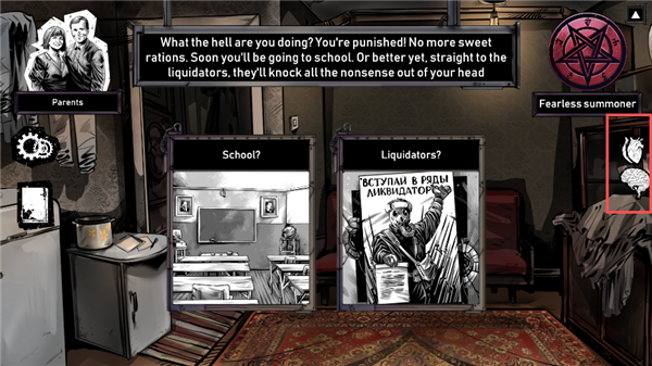 6、注意屏幕右侧的心脏和大脑,部分的选择会消减或增加两者。