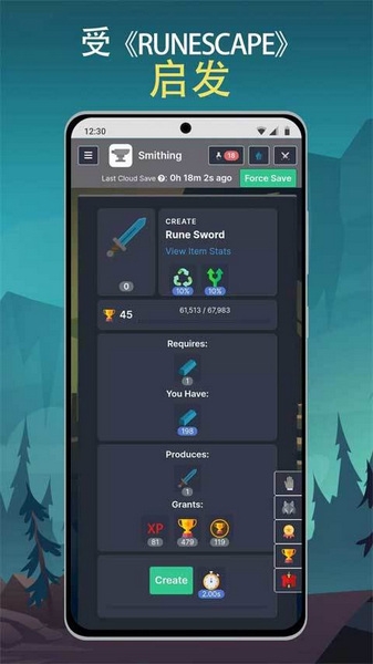 3、除了20多个可升级的技能外,游戏还拥有离线进度、兼容云保存功能、内置仓库/库存系统等更多功能!由于持续稳定的更新,您的冒险将永无止境。