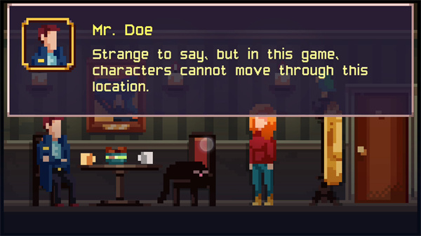 2、进到房间后,我们还需要和Mr.Doe先生进行进一步的交流,这里你需要将左上角的外套放到挂衣架上;