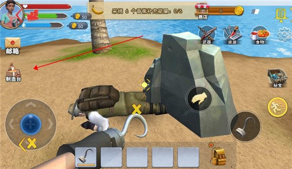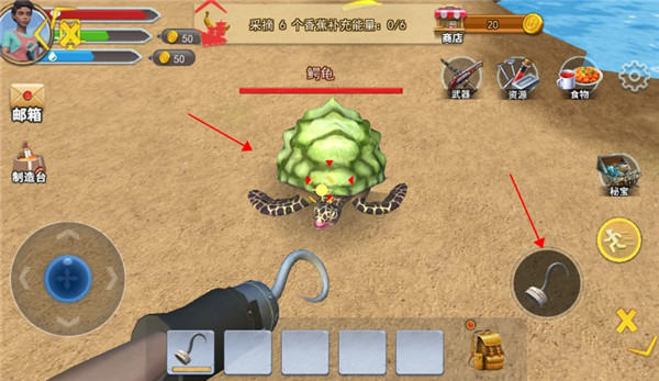 2、徒手收集散落在海滩或地图上的材料,或制作简单的工具来加快收集和供应。