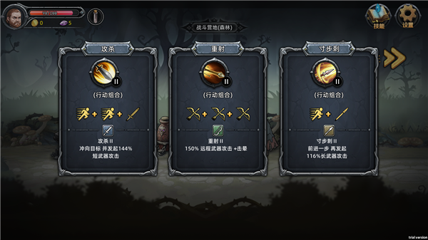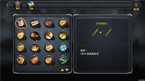 6、点击右上角的技能按钮可以查看不同技能的指令组合。