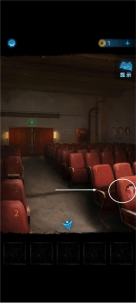 11、返回观众席,点击左侧椅子上的盒子,滑动滑块,使其从上而下顺序排列成『奠丧婚吉嫁』,打开盒子拿到化妆笔