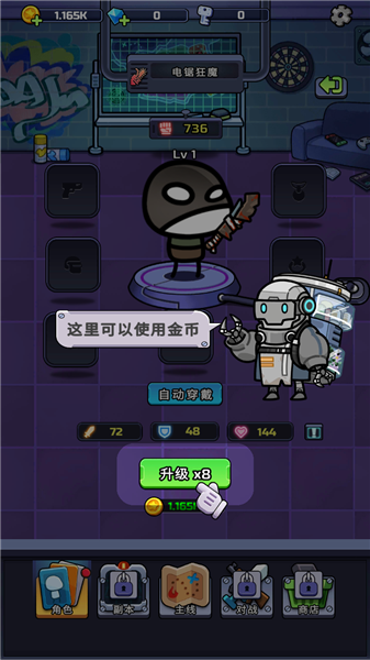 4、获取的金币可以用来给人物升级。