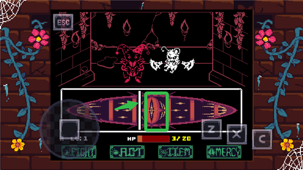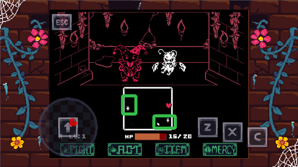 游戏保留了原版的灵魂操控战斗模式,但弹幕密度更高且攻击性更强。擦弹(即灵魂边缘触碰弹幕)可少量提升TP值(技能点),建议通过走位练习精准擦弹,为释放强力技能积累资源。大部分怪物无法通过传统SPARE饶恕,需通过特定ACT选项削弱其战意。例如,与Papyrus战斗时,选择夸赞其骨头可降低其攻击频率。