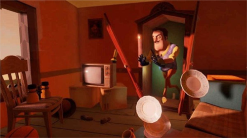 1、游戏一开始就直接进入到邻居家的房内,大门并没有锁,只要轻推下就可以,