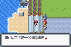 冲浪过去的台阶上看到三人堵路,上前对话进入战斗
