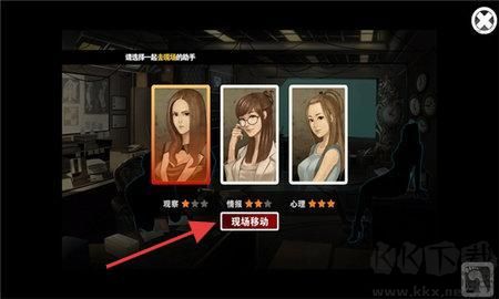 3、在角色选择界面,根据角色能力,选择合适角色,点击【现场移动】进入案发现场。