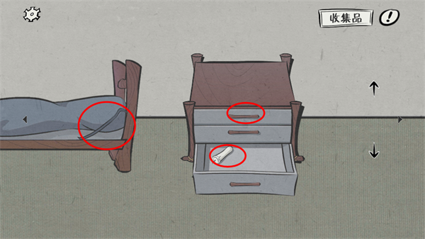 1、在进入游戏之后拿走抽屉里的蜡烛和打火机,接着将左边床上的撬棍拿走。