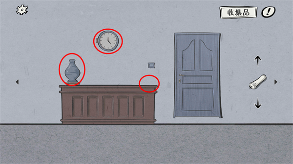 2、完成第一步之后移动到右边的场景,这里有一张桌子,桌子上有花瓶和DV机,将这2件物品拿走,这时在桌角那会发现数字8的提示,记住这个提示,接着点击上方的时钟将举报信拿到,最后把灯关掉。