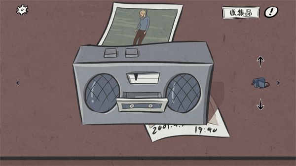 3、找到冰箱旁边的桌子,桌上的收音机下压着一张纸,纸上的04.07和19:40是提示,这时使用DV机可以在墙上发现提示。