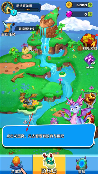1、首次从本站下载并安装育龙达人,打开运行进入游戏,点击龙蛋窝,先去看看有没有龙蛋吧