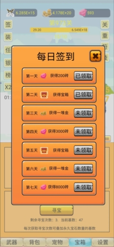 12、宝箱,寻宝建议都开了(后面几个是鼓励宝箱),宝箱的钻石是每天叠加基数,后面越来越多,寻宝的也是叠加基数,每天宝石越来越多。