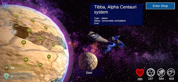 1、独特的游戏世界中,玩家将穿梭在美丽的太空中,探索未知的星球和宇宙站点。