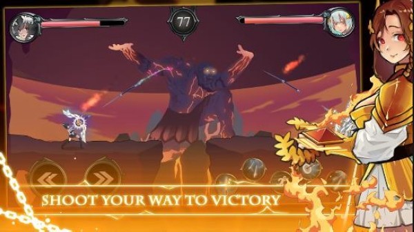 1、横版关卡模式:横版战斗模式快速上手,弓箭准星轻松挪动即可命中。