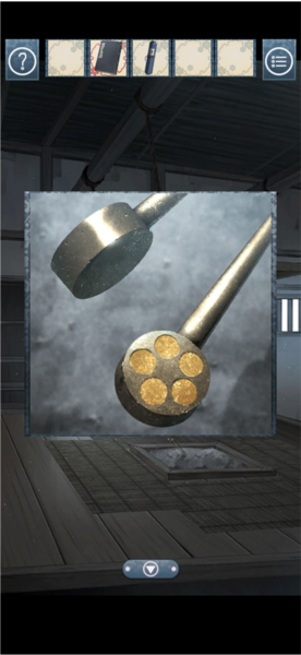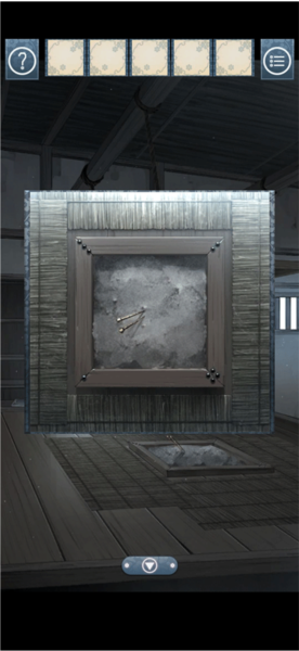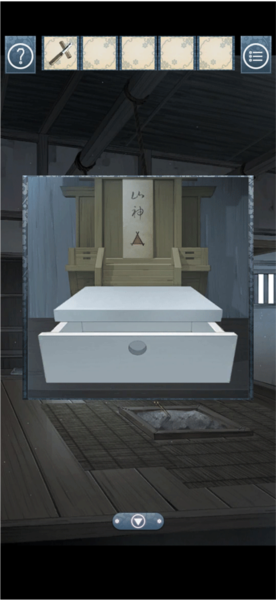 剧情ing,终于换视角了,这次是男主要努力了,首先无情的拿走山神的刀和左边柜子上的书,然后根据门上的线索和中间台子的线索得到五位数密码(用在哪里我忘了截图,好像是一个柜子),从门上出口走到中间,就是从左上到左下到右下到右上到中间,根据中间台子四角以及中间的数字提示,得到密码,三一四二五,打开柜子