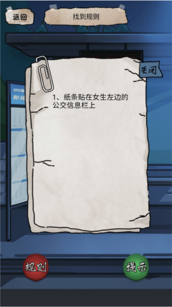 3、点击站牌玻璃,获得前三条规则。