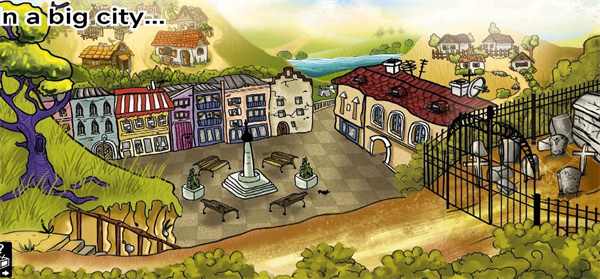 2、进入游戏界面,左上角会有文字提示,我们可以看到一个城市,