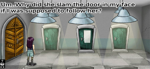 6、等女巫走后,点击门旁边贴着的通知,上面写着这里的规矩,爱丽丝不能够使用任何魔法了;