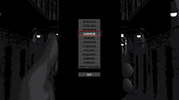 2、安装运行,启动游戏,在初入进入游戏的玩家,可在弹出此界面下,选择Chinese进行中的设置更换。