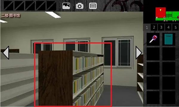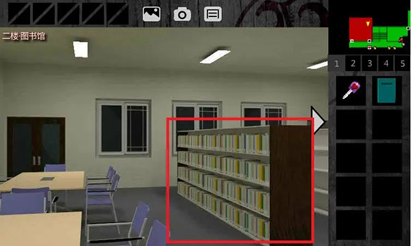 4、回到1F中廊,左转,上楼,进入2F中廊。左转,点击右前方的门,进入2F图书馆。