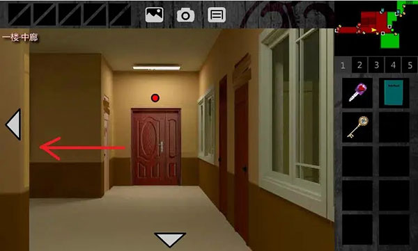2、后退,用【红桃钥匙】解开前方的门,进入2F东侧廊。下楼,进入1F东侧廊。右转,用【红桃钥匙】解开右侧金牛座的门,进入1F医务室。右转,出门,进入1F中廊。点击右上角小地图,可以查看大地图。