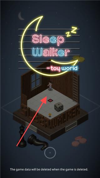 1、进入游戏界面,看到【SleepWalker-toyworld】标识,再点击箭头所指的小人。