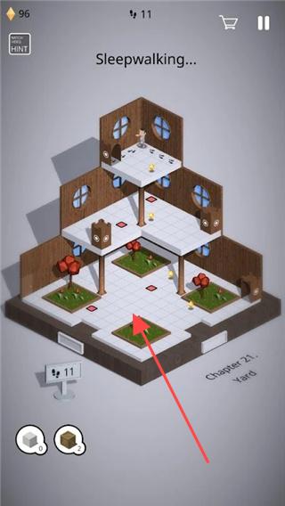 3、继续在【Sleepwalking】场景中,按箭头指示点击地面方块。