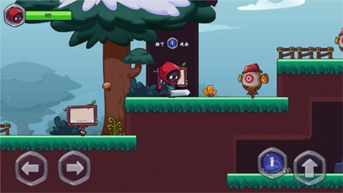 2、点击右下角的向上的箭头按钮可以控制角色进行跳跃。