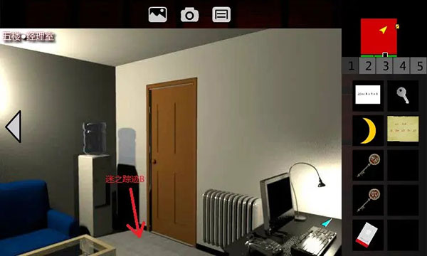 5、回到1F电梯间。点击5F、出电梯、进入5F西侧廊。左转3次,解开红色1号门,进入5F生命之歌。触发剧情。后退,取走【遥控器】(在桌子上),出门、进入5F西侧廊。点击密码器,要输入5位密码。联想到retaw,门锁解除,进入5F娱乐室。取走【3号钥匙】,触发剧情。丹回到5F西侧廊。