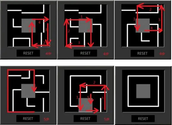 11、出门,进入5F北侧廊。左转,上楼,触发剧情,左转3次,看到铁门左边的密码器。原理是三阶拼图。把拼图拼成白色的口。再点击一下打开,刷【临时门禁卡】,进入铁门。解法:完成每一部分,请保证你面前的拼图与下一部分重合。