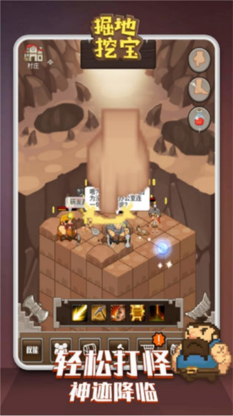 1、在挖掘宝藏的途中你会遇到各种小怪,打败他们,去寻找更深层次的宝藏;