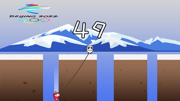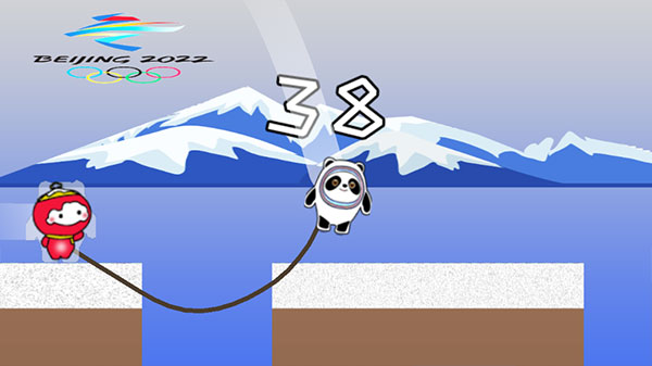 这个游戏是卡通风格的。冰墩墩雪容融手牵手合作,一起跳来跳去,特别是测试用户的协调性。