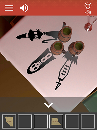 8、继续后退右转,墙上提示蛋2(指裂的尖刺数为2),点右边桌子再点蜡烛用火柴点燃三根蜡烛,再点左边倒立的杯子获得影子密码482。
