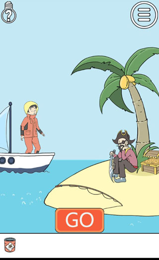 14、点男主的帽子,头顶有金币,点击男主的腿,跳起来掉出金币,两个金币给海盗即可
