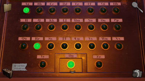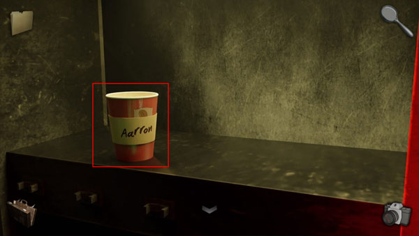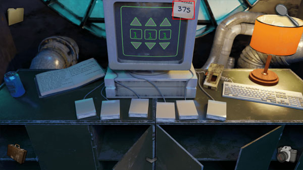 3、激活显示器观察上面的控制面板,再根据右边柜子纸杯上的提示Aarron按顺序点击打开设施大门。