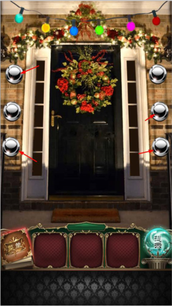 9、第九关,我们在中间的转盘上选择门上面的图案,选择正确的图案之后按右边的拉杆,四个图案全部选中在,门打开,开始第十关。