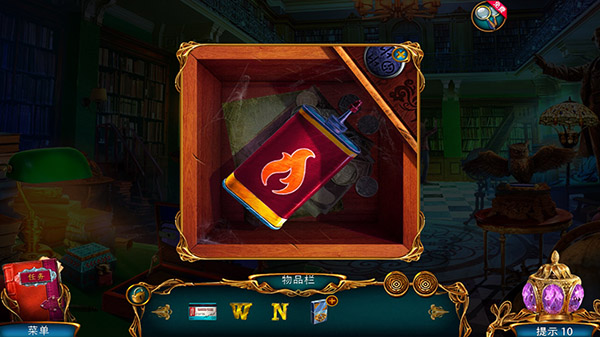 来到金色地球仪,打开获得紫外线灯和拼图嵌块1,点击猫头鹰,得到拼图嵌块2