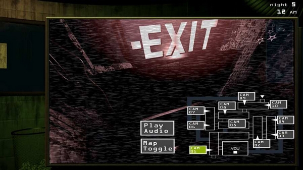 监控与防御:玩家可以透过右方的闭路电视界面观察设施和通风口,并适时在各处播放声音或启动排气来驱赶玩具熊。同时,玩家还要兼顾左方的电脑界面,在音响设备、闭路电视或通风系统终端出现错误时尽快重启。