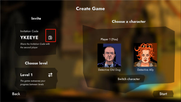 5、这个游戏被设计成两个玩家一起玩。在开始之前,另一个玩家需要先分享邀请码给第二位玩家加入,点击左侧的分享即可
