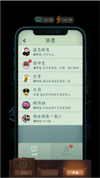 6、最重要的就是消息页面,玩家可和游戏中的缘主聊天并获得一些推理线索。