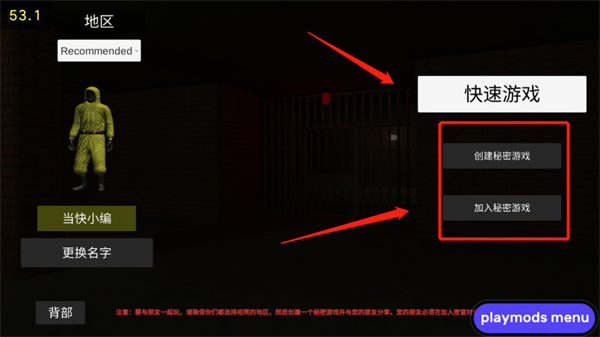 2、快速游戏是指和随机匹配,如果想要和朋友一起玩,选择创建秘密游戏可以创建房间 。